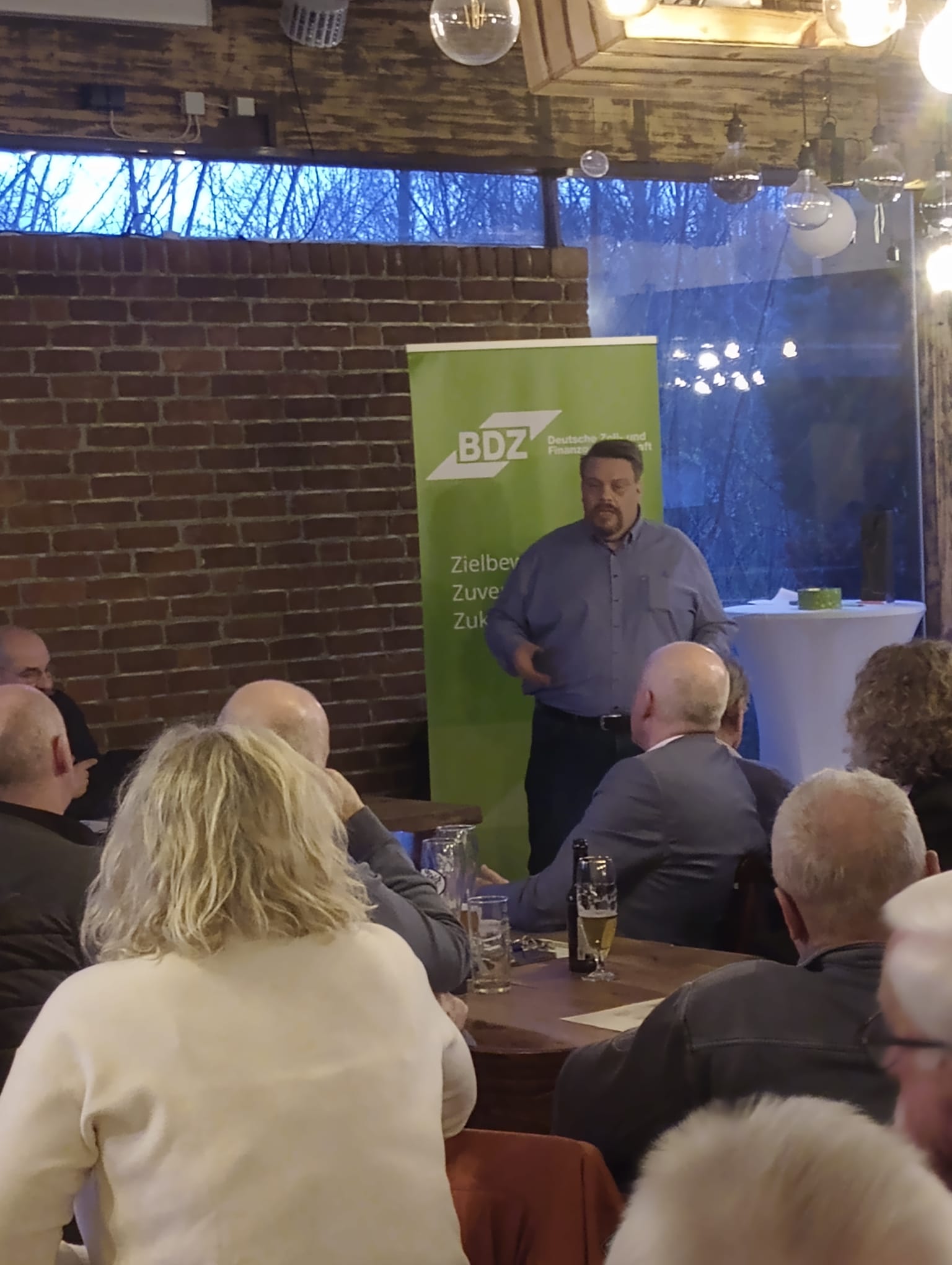 In seinem Grußwort thematisierte der Leiter des Hauptzollamts Kiel, LRD Robert Dütsch, die Dauer der Ausschreibungen beim HZA Kiel und wies auf den Mehraufwand bei offenen Ausschreibungen hin. Zugleich kündigte er Prozessoptimierungen und eine verbesserte Personalzuführung an, um Auswahlentscheidungen zu beschleunigen. Weitere Schwerpunkte waren die Nachwuchsgewinnung mit Einstellungen im mittleren und gehobenen Dienst 2026, die zwar aktuell gute Bewerberzahlen, jedoch eine sinkende Bewerberqualität aufweist, der verzögerte Bau des Einsatztrainingszentrums in Neumünster, der aktuelle Sachstand zum Zollboot „Fehmarn“ sowie das Projekt „Zoll 2030“.